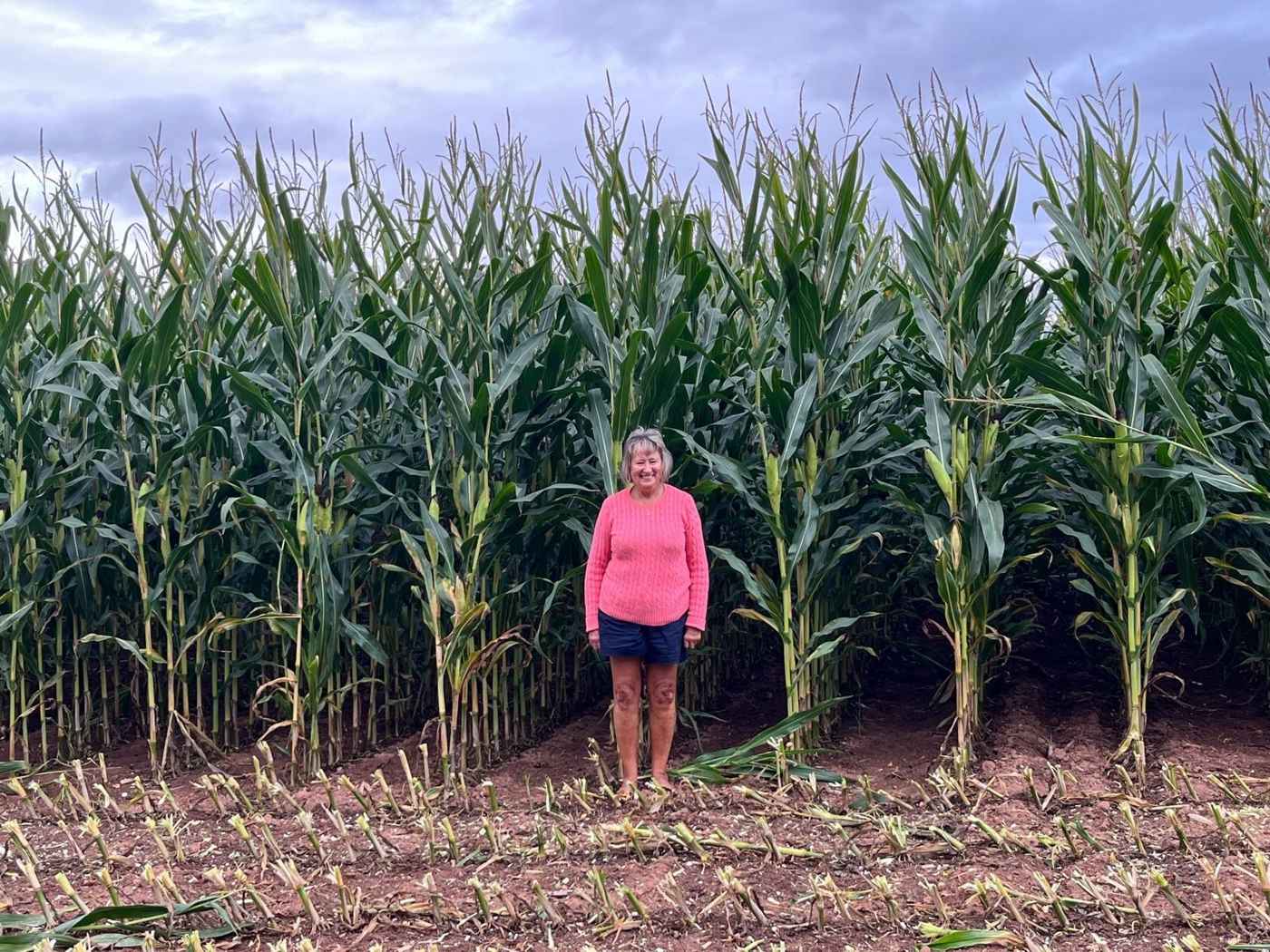 Richard Gough’s wife, Carol Gough stands beside the KWS Pascoe maize crop on their farm in Ludlow, Shropshire.