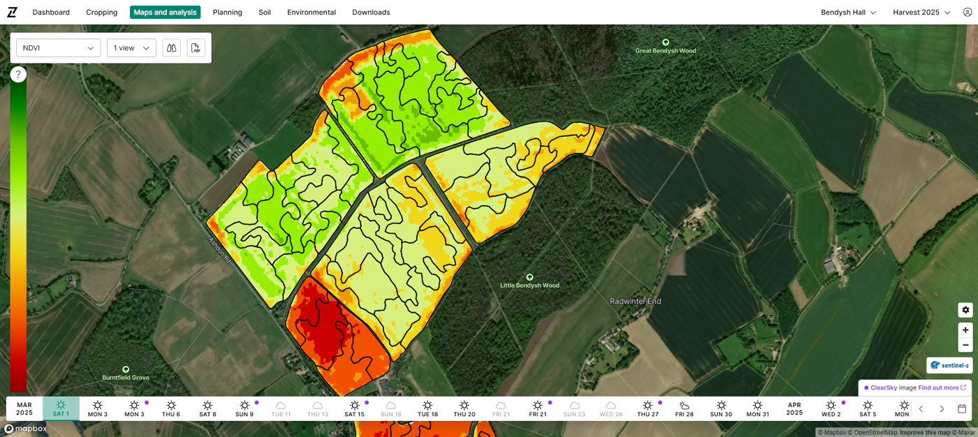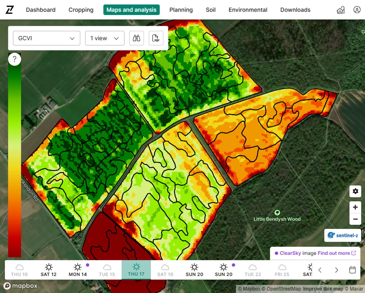 One limitation of most satellite imagery is the need for a clear view of the crop canopy. In the UK, cloud cover can restrict the availability of usable images for extended periods.