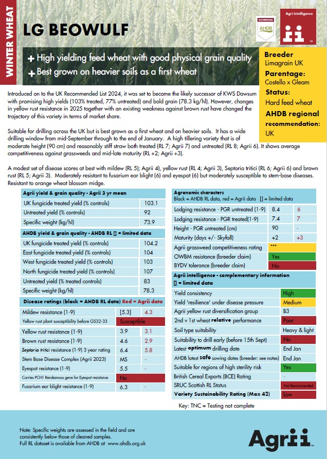However, changes in yellow rust resistance in 2025 together with an existing weakness against brown rust have changed the trajectory of this variety in terms of market share.