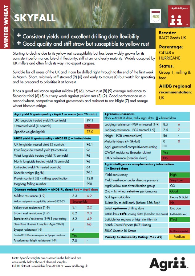 Widely accepted by UK millers and often finds its way into export cargoes. Suitable for all areas of the UK and it can be drilled right through to the end of the first week in March.
